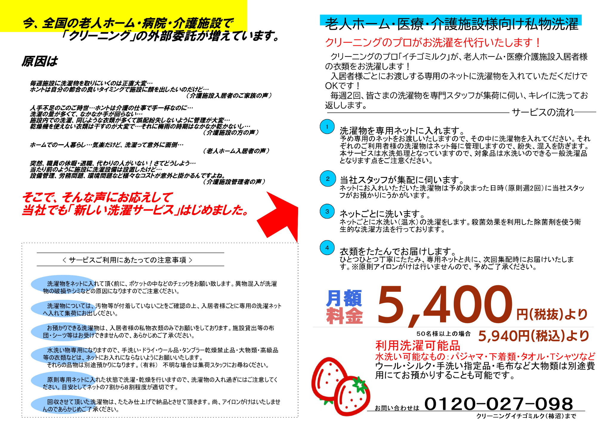 クリーニングのプロ「イチゴミルク」が、老人ホーム・医療介護施設入居者様の衣類をお洗濯します!